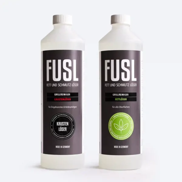 Dieses Set enthält jeweils eine 1-Liter-Flasche FUSL Krustenlöser und FUSL Fettlöser – die perfekte Kombination für gründliche Grillreinigung.
